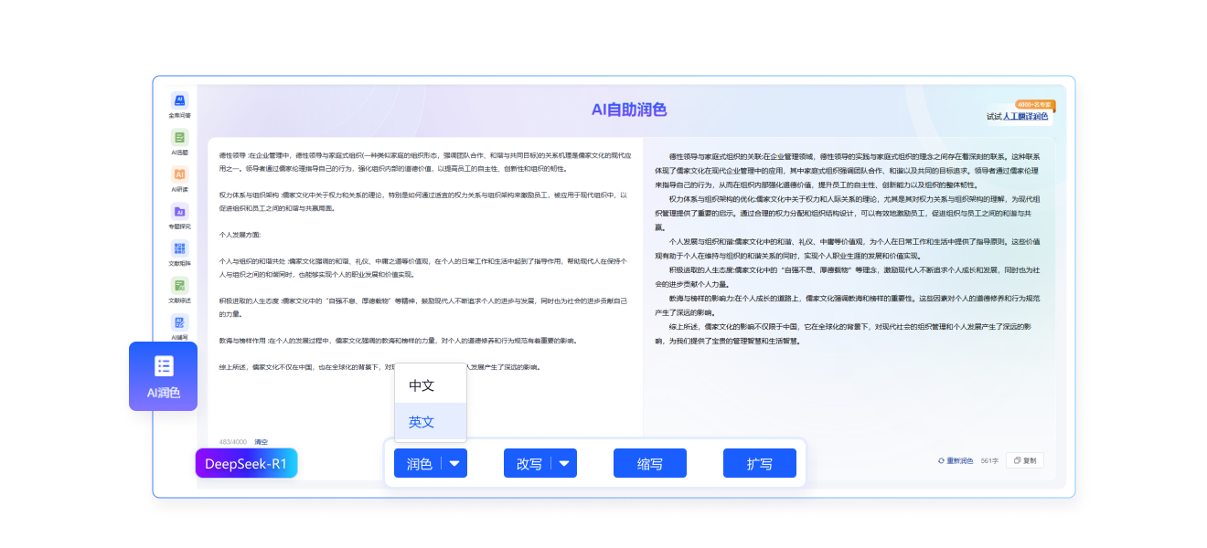 面向学术领域,以cnki海量文献数据为依据,翻译结果更学术、更准确支持长篇文献翻译